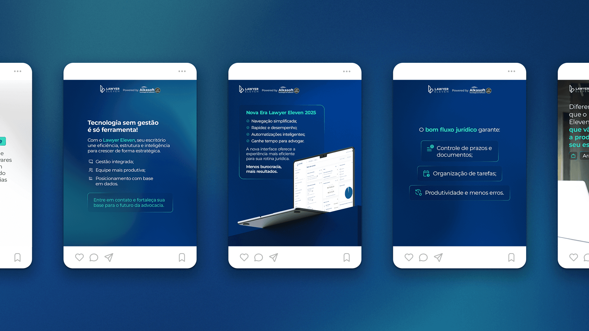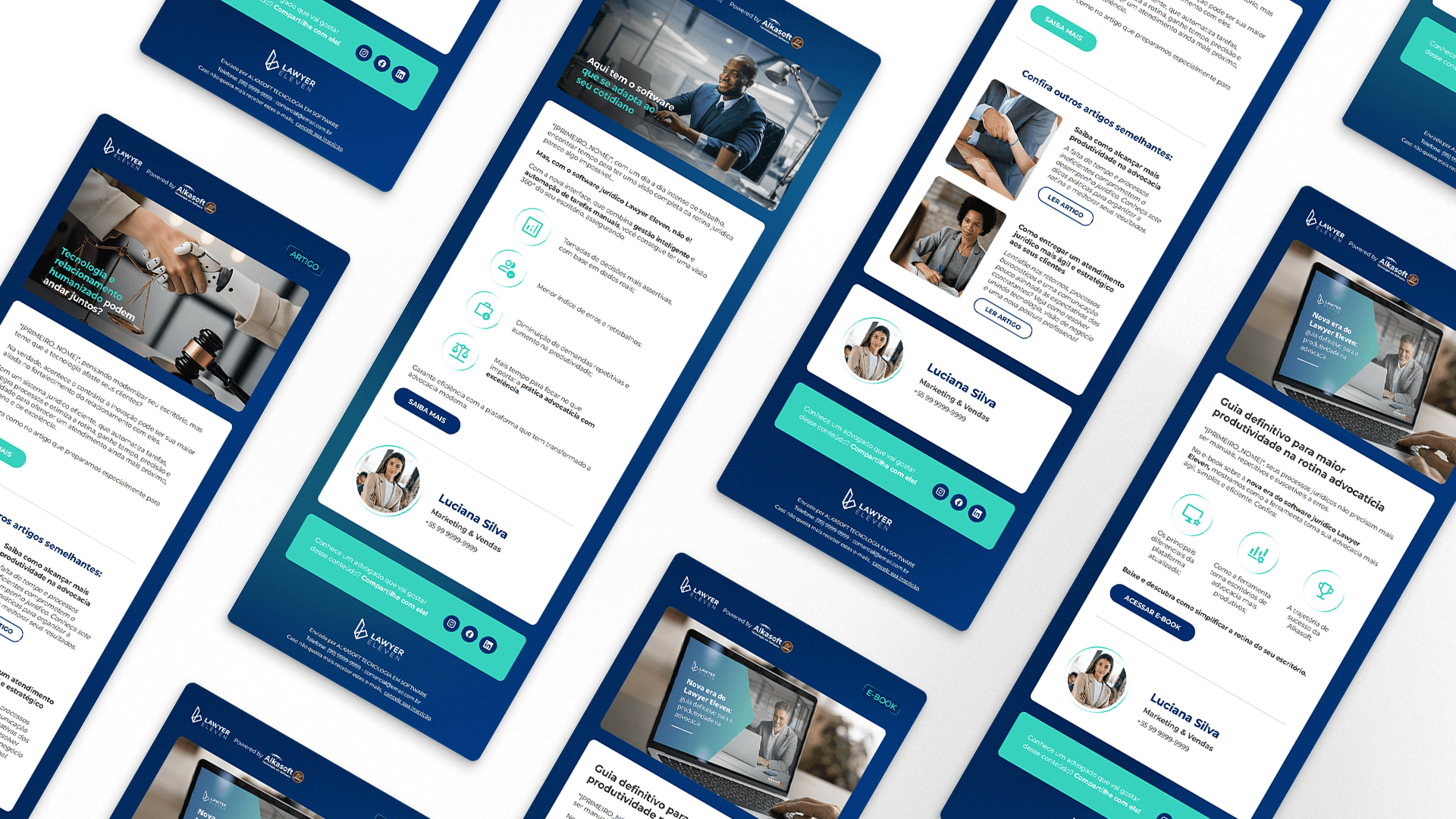 I developed an expanded visual identity system that strategically separated the communication of the corporate brand (Alkasoft) from the product brand (Lawyer Eleven).
